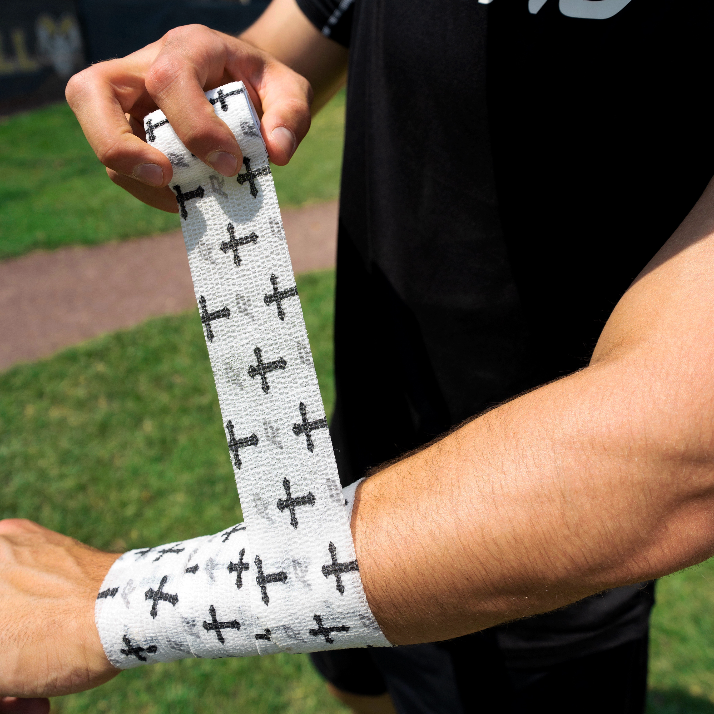 Stay locked in with Rena Sports White and Black Cross Stretch Athletic Tape. Designed for athletes who demand peak performance and bold style, this flexible sports tape features a sleek black cross pattern that adds a clean, confident edge to your game. Whether you're hitting the weights, grinding through practice, or stepping up on game day, this tape delivers reliable support and all-day comfort—no matter how hard you push.