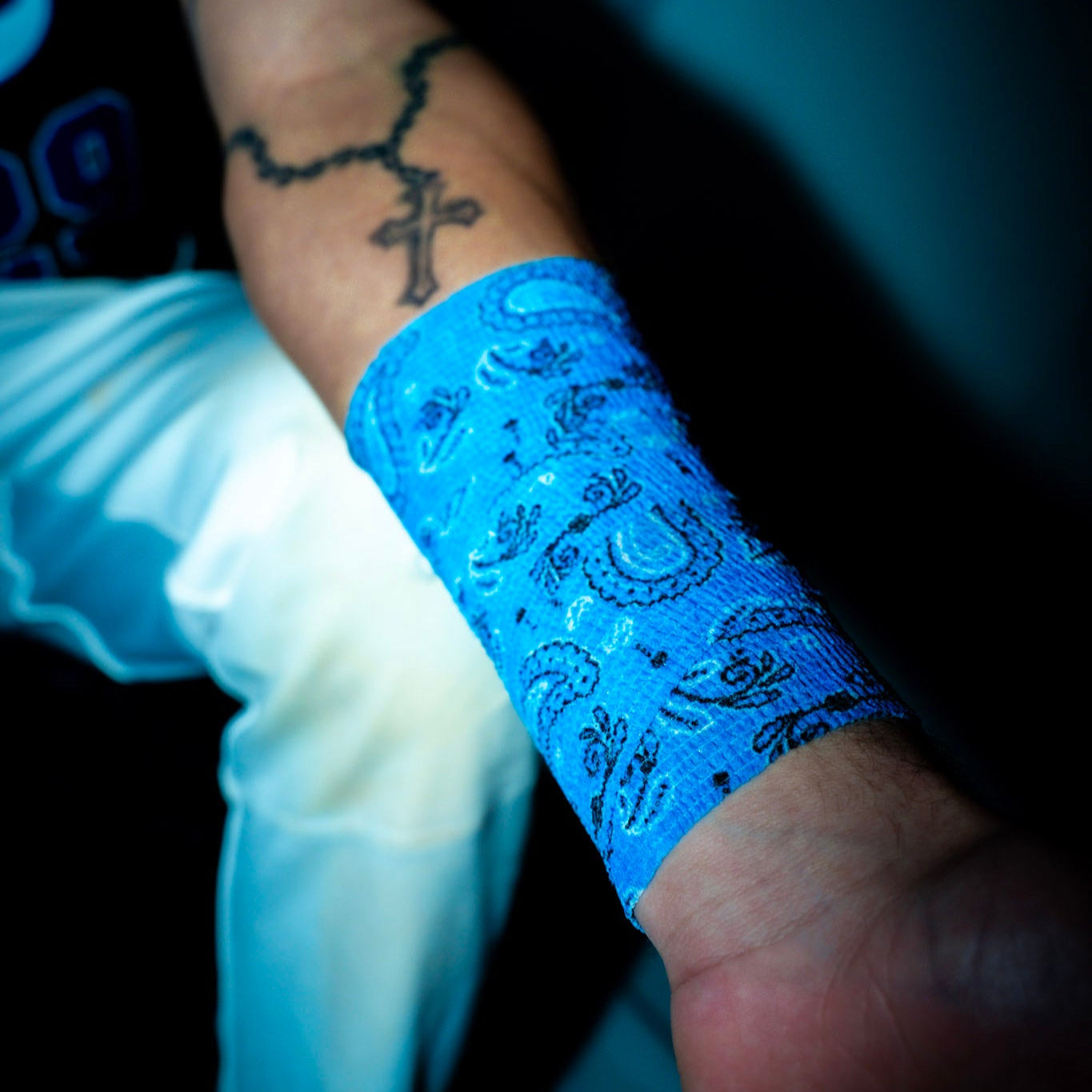 The Rena Sports Blue Bandana Stretch Athletic Tape elevates any athletes look. This cool designed athletic tape features a blue bandana print perfect for athletes of any sport. The Rena Sports Blue Bandana Stretch Athletic Tape is made from a specially crafted blend of 90% non-woven material and 10% spandex catered to elite athletes. This material offers athletic flexibility, allowing you to adjust the sports wrap with ease for the perfect level of support and comfort.
