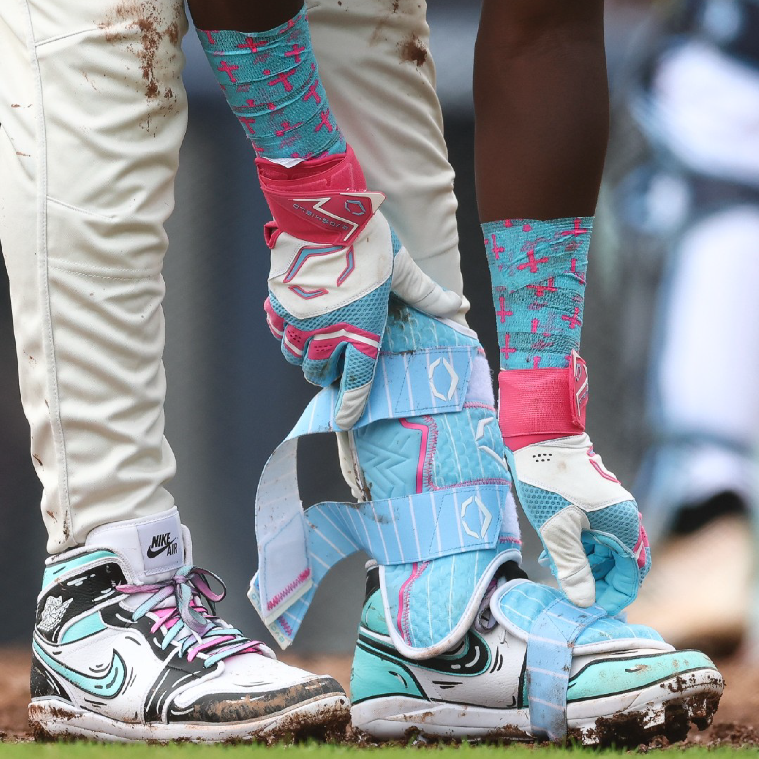 • Bright cotton candy cross design for a playful, athletic vibe
